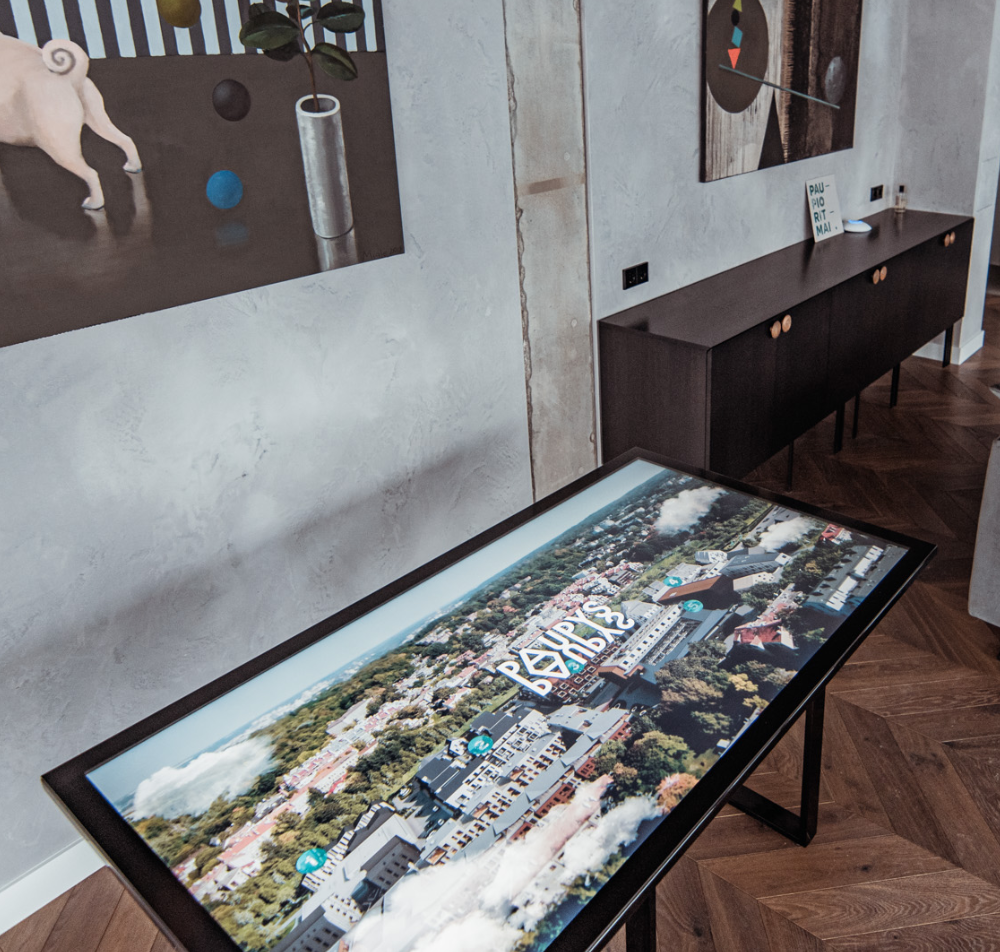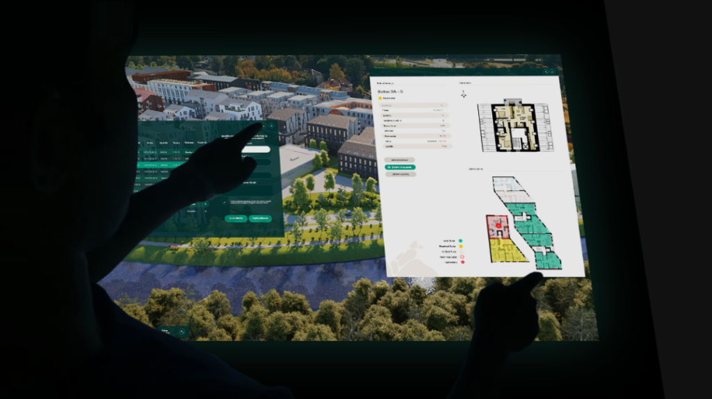 To present the largest new district under construction in Vilnius “Paupys”, an interactive touchscreen table software has been developed, which is connected to a common sales system.